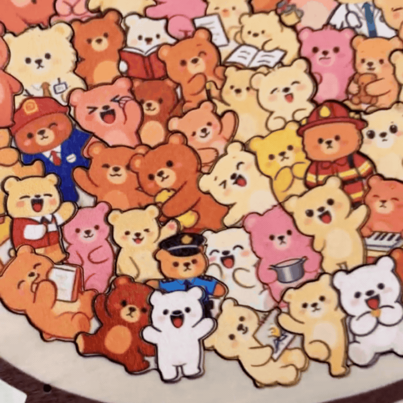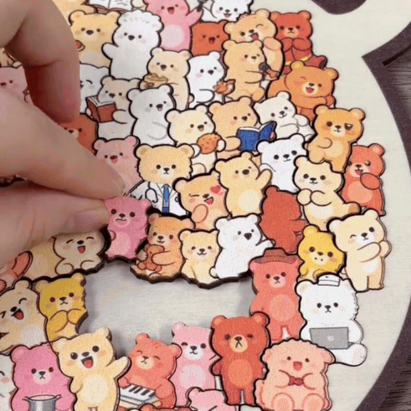 È un puzzle in legno disponibile in tre varianti: gatto, cane e orso.